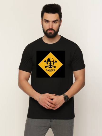 MEN’S BLACK ROUND NECK T-SHIRT WITH CHEMIST GRAPHIC PRINTED TSHIRT
